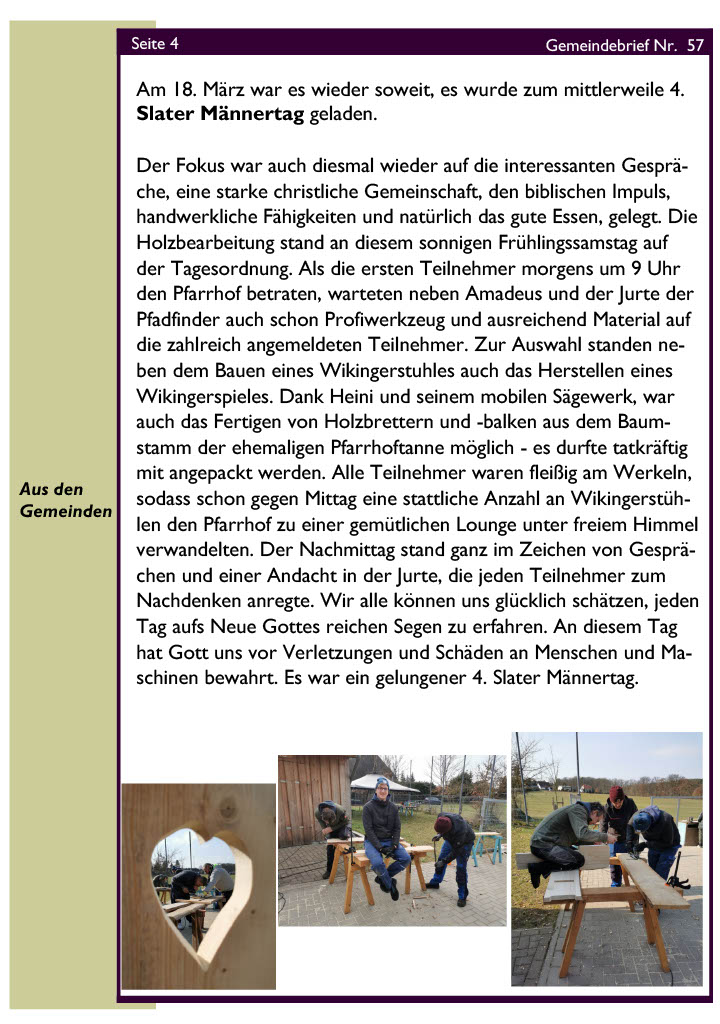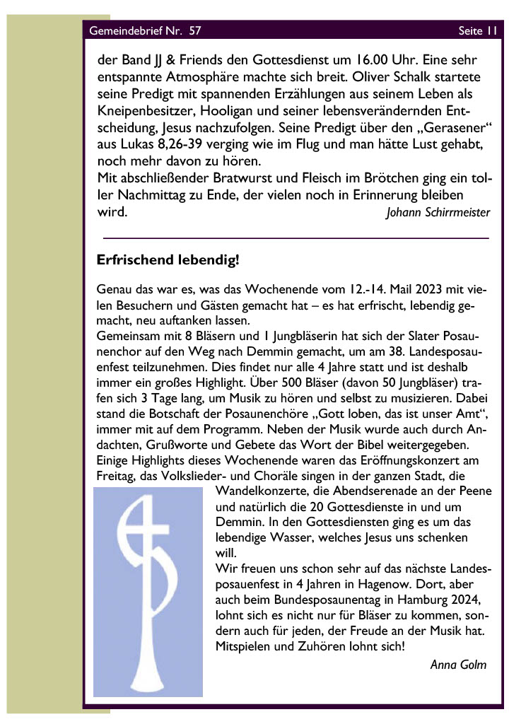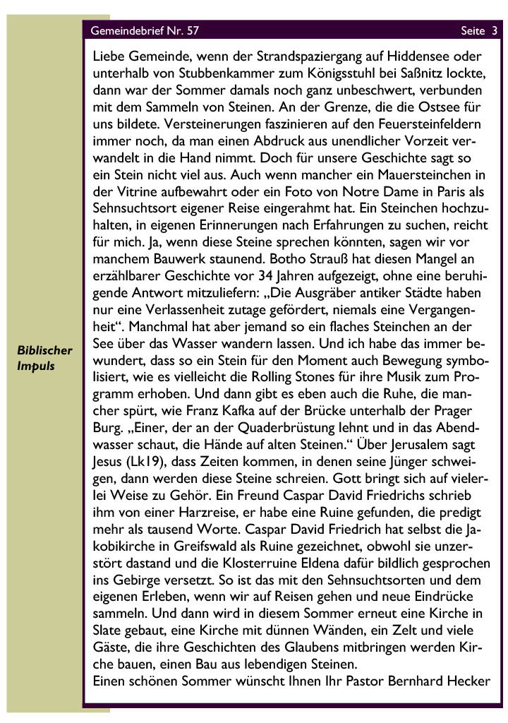 Hier finden Sie den Gemeindebrief der verbundenen Kirchengemeinde Slate, Marnitz und Suckow.